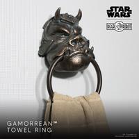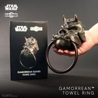 This all-new Regal Robot creation continues our tradition of giving fans new ways to bring Star Wars™ into their homes and their lives! It hangs simply with two included screws and has a 4.75″ diameter ring suitable for hand towels and wash cloths. With an overall height of approximately 8″, this resin and metal creation features a classically detailed Gamorrean Guard sculpture, hand-finished in a realistic faux-bronze with a layered patina.
