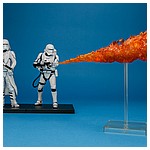 - Star Wars ARTFX+ Statues bring you all of the quality and detailing that you expect from an ARTFX release in a great smaller scale perfect for collecting.The next elite army builder pack brings you more faceless characters from Star Wars Episode VII: The Force Awakens with the FIRST ORDER SNOWTROOPER & FLAMETROOPER TWO PACK! The war machine of the Imperial successor known as the First Order has several specialized stormtrooper variants, and these are two of the coolest and most popular with the fans. First up is the Snowtrooper with reinforced armor featuring thick gloves, bodysuit, kama, environmental backpack unit, and of course a distinctive helmet with glare-reducing eye slit. This Snowtrooper can be posed aiming his blaster or holding it at rest, and he comes with an optional red shoulder pauldron to denote rank. At the cold weather trooper’s side in this two pack is the Flametrooper, a highly trained soldier wielding a fearsome anti-personnel weapon. Like his Snowtrooper ally this First Order warrior wears armor with enhanced environmental features including another helmet designed to mitigate glare (this time from sheets of flame), but trades in the blaster for a powerful D-93 incinerator weapon tied to a backpack loaded with propellant tanks. Kotobukiya even supplies your Flametrooper with a special freestanding flame jet special effect part for a dynamic action display! ARTFX+ Statues are fun-to-assemble pre-painted snap-fit kits that can be put together easily in seconds without glue or modeling skill. The Snowtrooper and Flametrooper in this two pack stand just over and under 7 inches tall (1/10th scale) in their respective aiming and firing poses, and magnets in their feet provide perfect stability on the included metal display bases. Your First Order collection will root out its enemies no matter what the environment with these two elite troopers at your command!