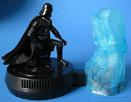 "What is thy bidding, my Master?" Darth Vader asks, kneeling respectfully before the holographic image of Emperor Palpatine. They have both felt a great disturbance in the Force; Palpatine believes that Anakin Skywalker's son is the cause. Vader suggests bringing Luke over to the dark side to make him a powerful aly. "He will join us or die," Vader vows to his Master.