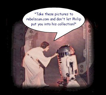 A man and a droid with a duck under his arm walk into a bar. The bartender says to the duck, "We don't serve their kind here. Your Rebelscum friends will have to wait outside." Newspaper boy on Coruscant: "Extra, extra, Rebelscum destroy 'nother Death Star! Read all about it!" Stormtrooper: "Blast 'em!" Rebelscum.com, the only scum in the universe with the "force" to rock your world...or your deathstar. Rebelscum.com, the closest you'll ever come to experiencing Star Wars "profanity" on the internet. You are accessing Rebelscum.com, the only profane words to be spoken in a Star Wars movie. Way to go George. Rebel Scum, Rebel Scum, REBEL WITH A CAUSE CAUTION: REBELSCUM.COM might cause you to think.. please turn around now if you are offended by this type of thing. BETTER than from the mouth of Salacious Crumb, You should get your SW toy news from Rebelscum (.com). STOP YOU REBEL SCUM!!! Not you Kenner action figures! Yes you, Mattel's KENNY and BARBIE clone dolls!!!**** Rebelscum is the type of scum you don't want to scrub off. You may hate soap scum. You may hate bath scum. But you will love rebelscum! As Han Solo would say.... "Hey it's me." Rebelscum.com When Han and Leia had kids he gave her a rebelscum. You don't need no other stinking web sites when you have rebelscum to give you the 411. A spy for Darth Vader says, "Lord Vader I over-heard some rebel's cum- unications and yes, Lord Vader, the REBELS COME!" Rebelscum = that white, sticky residue that Dack left on the bottom of the AT-AT's foot." Is that rebelscum in your pocket, or are you just happy to see me? Jabba picked the tick from his fatty folds... saw Chewbacca scratching himself... swollowed the tick and yelled at Chewy, "Rebelscum!" Rebelscum! Taking back the galaxy, one collectible at a time! Who got the REBELSCUM all over the monitor? Rebelscum, Rebelscum, Ra-Ra-Ra. Kill the empire Sis-boom-bah Q: What happened when Luke and Han saw Leia in her skimpy slave outfit? A: "Rebels cum"! Q: What does Vader find in his shower stall? A: "Rebel scum" New "RebelScum.com" - with 50% more and a fresh pine scent! Use only as directed. RebelScum.com: Unofficial home of the Force. Yo quiero RebelScum.com. Immerse yourself in RebelScum! Satisfy your craving @RebelScum.com rebelscum.com - all rebels, all scum, all .com. If we aren't careful that REBELSCUM just might take over the net!!! Oh shucks, Rebelscum!! There goes the neighborhood!!! Rebelscum, well we could do worse! It's that REBELSCUM.COMplete with the latest news and images of the Star Wars collecting universe! Get the new and enhanced DEATH STAR! The best way to get rid of that RebelScum! Eat government cheese, rebelscum!!! REBELSCUM. It's not a Star Wars porn site." rebelscum.com...where the scum come!! Tired of that unsightly rebelscum attacking your stardestroyer? Get Vader-off and clean it the easy way! Vader-off, cleaning the galaxy, good-free! It was the late '90's. The age of glittering gadgets, life-appeasing aplliances, and whimsical web pages. 20 years prior a revolution took place that was hardly noticeable. It united the whole world in a fantastic tale of wizards, evil emperors, and a princess and her heros. It went by the name STAR WARS and it sparked an unheard of strategy in merchandising. Now enthusiasts, fans, and collectors alike need to be informed. They need to get their information as quickly as possible son they turn to REBELSCUM.com Be a part of the collusion.! Luke was looking around for his lightsaber but only found some old socks with crusty reblescum all over it. rebelscum - that mucas build up a Rancor gets from to many rebel spy snacks Emperior Palpatine, your call to the Death Star can't be completed as dialed. It seem to have been relocated across the Yavin System by a band of Rebelscum. Don't be a scalperscum, be a rebelscum! Rebelscum, doing battle with scalperscum, for figurescum. Rebelscum is better than bathscum. I'm not only a member of rebelscum, I'm also its owner. Han: "You like me because I'm a rebelscum." Leia: "I like nice men." Han: "I'm a nice man." Leia: "No you're not you're a..." REBELSCUM and rebels go, but their toys live on forever. Whenever they hear that a new shipment of Slave Leias has hit the pegs, all the REBELSCUM." Rebel Scum.Com - Tastes like Chicken. Rebel Scum.Com - The other white meat. Rebel Scum.Com - Quite possibly the www's most perfect POTF2 Page" I want some fun, ho hum I think I will go to rebelscum. REBELSCUM.COM- All the fun of regular scum, but with half the calories/fat! REBELSCUM.COM- We've got more going for us then the NOITE SYSTEM! REBELSCUM.COM- IT's better than kissing a wookie REBELSCUM.COM- Its BETTER than the death scene of the ewok! REBELSCUM.COM- We're Wanted men! "REBELSCUM.COM- It will be a page long remembered"- Tarkin You know you're REBELSCUM when you've got the death sentence on 13 systems. Even the Empire likes this Rebelscum! Rebelscums kiss there own sister. "Rebels? Ohh, I feel glum, Kill'em all, I'll pay your sum! Once successful, we'll have rum, Just defeat those rebelscum!" Dr. Suess as Emperor Palpatine "Rebelscum... no its not a detergent." "Rebelscum. If its not here... its not worth it." "Rebelscum. If its not here... its scum." Not just scum, REBELSCUM!! My parents blew up the Death Star and all I got was this lousy website! (rebelscum.com) Rebelscum.com, when you absolutely, positively need Collector information NOW! Rebelscum, the searching, trading, information, preview, so-you-can-collect, website! Rebelscum! Just Dewback It! NEW!!! FANTASTIK REBEL SCUM REMOVER!!!!! (With new IMPROVED Dark Side scrubbing bubbles!) Palpatine Inc. is proud to bring you this powerful,scientifically advanced product that does it all-kills any rebel scum streak-free Wookies,light side jedi,annoying bitchy princesses.....this is the cleaning solution for all corners of the galaxy!!! The cleaning experts at Palpatine I.N.C. have combined the streak-free,grease cutting power of FANTASTIK with th