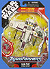 Saesee Tiin / Jedi Starfighter - Jedi Master Saesee Tiin flies his customized starfighter to his homeworld, which is under attack by Separatist forces. Tiin’s sleek fighter soon blasts the enemy vessels into retreat. Landing on the planet, he converts his fighter into a robotic Jedi warrior to strike down an army of battle droids that have landed there!