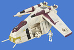 Clone Pilot / Republic Gunship - The Republic gunship sweeps across Geonosis, blasting the Separatist forces with a barrage of missiles! The clone pilot lands in the middle of a fierce battle between droids and clone troopers, and converts the gunship into a heavily armed ground fighter that goes straight for droids!