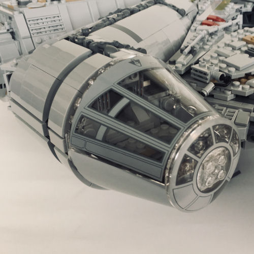 Charlie picked the cockpit because LEGO had created two new and unique pieces that gave the Falcon a special look that separated it from the rest of the Star Wars spaceships. He also like the conical curve that was at right angles to the main body of the ship because it helped to set off the angled of the entire build.
