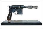 In Star Wars: Episode V The Empire Strikes Back, Luke Skywalker's Blas Tech DL-44 blaster was a real antique German 7.63mm semi-automatic pistol, unlike Han Solo's which had been made from a modern replica of the same firearm.